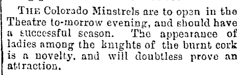 Blackface is a topic too huge and too complicated to really discuss in a short section of a single blog post (and one that has been written about in detail elsewhere), but suffice to say that minstrelsy, including blackface minstrelsy, was a part of the live entertainment available to New Zealanders during the course of European colonial settlement, from the nineteenth century onwards (unfortunately, it still crops up sometimes, even in 2020). I came across this particular term for it in an account of a ‘juvenile’ minstrel show performed by children at a school in Christchurch in 1879, and it can be found in other advertisements for blackface minstrel shows throughout the nineteenth and twentieth centuries.