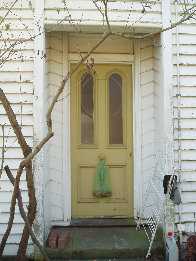 The narrow – and colourfully painted! – door from the kitchen into the scullery, on the kitchen side. Image: M. Hennessey.