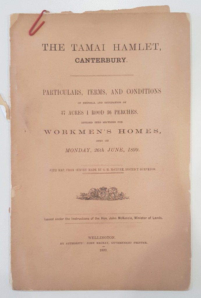 Lands Department, n.d. “Particulars, Terms and Conditions of Disposal and Occupation of Tamai Hamlet”. Accession CH325, R20081115. Archives New Zealand, Christchurch office.